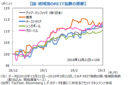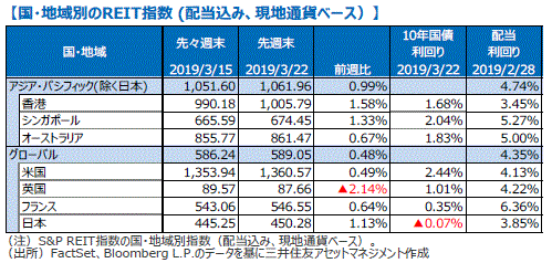 グローバル・リートは欧米での長期金利低下を受けて週間では0.48%上昇しました。