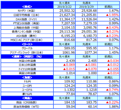 先週のマーケットの振り返り(2019/3/25-3/29)