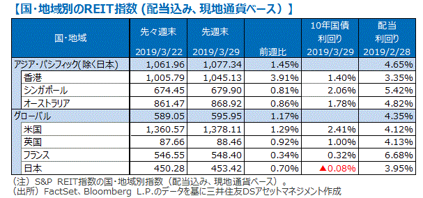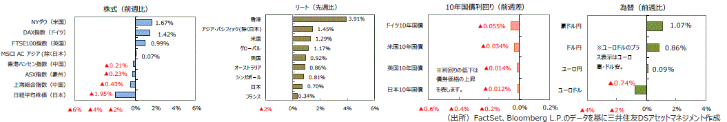 グローバル・リートは主要国の長期金利低下を受けて週間では1.17%上昇しました。