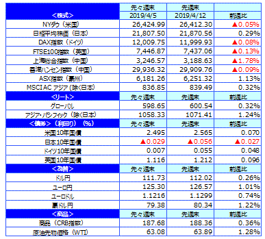 先週のマーケットの振り返り(2019/4/8-4/12)
