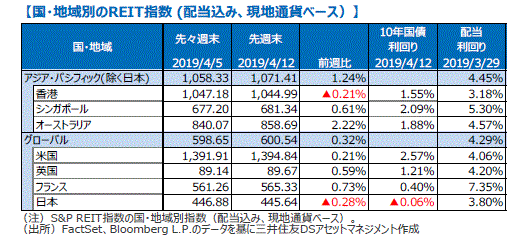 グローバル・リートは主要国の株価上昇を受けて週間では0.32%上昇しました。