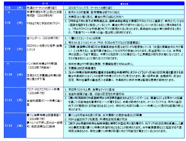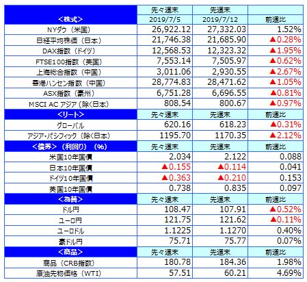 先週のマーケットの振り返り(2019/7/8-7/12)