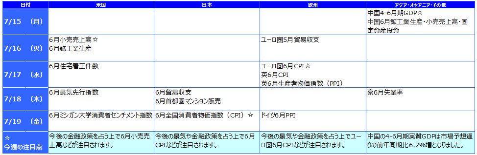米国の10年国債利回りは、6月の米消費者物価指数が予想を上回る内容だったことや、30年債の入札が軟調だったことから0.088%上昇しました。ドイツ、英国の10年国債利回りはドイツのインフレ率が上方修正されたことなどから上昇しました。
