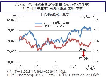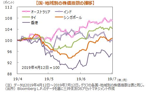 米国株式市場は、パウエル米連邦準備制度理事会(FRB)議長が議会証言で利下げに前向きな姿勢を示したと受け止められたことから金融緩和期待が広がりました。NYダウは週間で1.52%上昇し史上最高値を更新しました。日本株式市場は、パウエルFRB議長の議会証言などが好感されたものの、機械受注などの経済データの弱さなどが重石となり、週間では日経平均株価は0.28%下落しました。欧州株式市場は、英国の合意なき欧州連合(EU)離脱が改めて意識されたことや、大手企業が業績見通しを引き下げ景気に対する懸念が広がったことなどから下落しました。中国株式市場は翌週に予定される月次主要統計発表を控えた様子見姿勢や、ハイテクベンチャー向け市場「科創板」の取引開始を控えた需給悪化懸念などから上海総合指数は2.67%、香港ハンセン指数は1.05%下落しました。