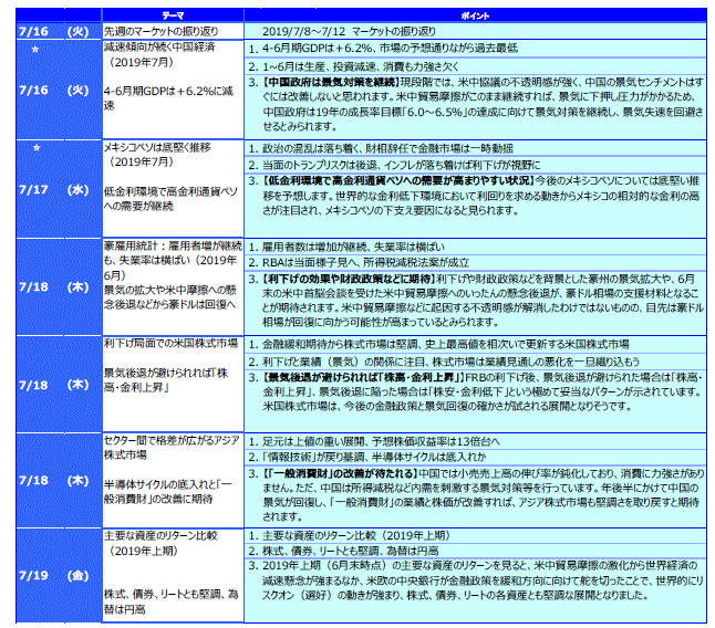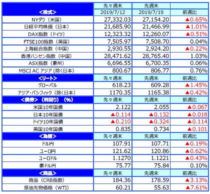 先週のマーケットの振り返り(2019/7/15-7/19)