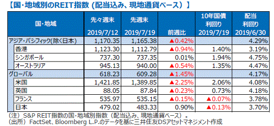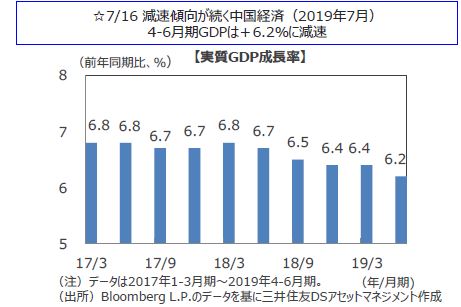 米国の10年国債利回りは、中国の4-6月期のGDPが前四半期比低調な内容となったことや、欧州中央銀行(ECB)の政策金利の引き下げ期待などから0.067%低下しました。ドイツ、英国の10年国債利回りも同様の要因などにより低下しました。