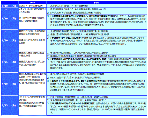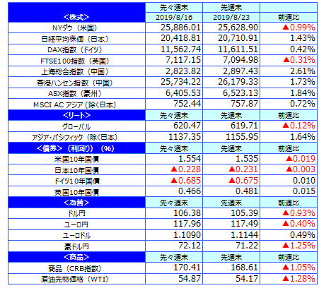 先週のマーケットの振り返り(2019/8/19-8/23)