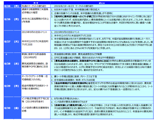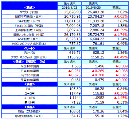先週のマーケットの振り返り(2019/8/26-8/30)