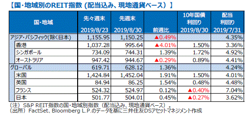 グローバル・リートは、長期金利の低下などを受け1.36%上昇しました。