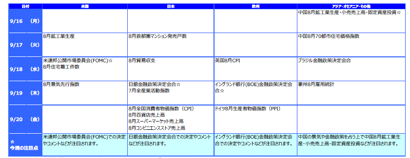 ※各経済指標・イベントは予定であり、変更されることがあります。