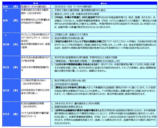 先週のマーケットの振り返り(2019/9/9-9/13)
