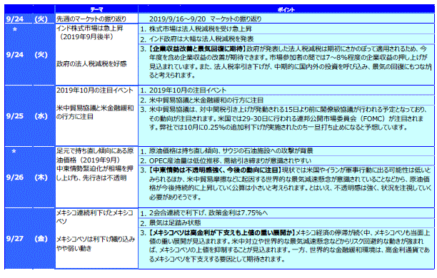 先週のマーケットの振り返り(2019/9/23-9/27)
