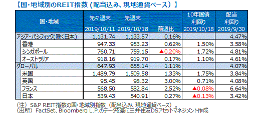 グローバル・リートは、英国の合意なきEU離脱の回避期待などから1.11%上昇しました。