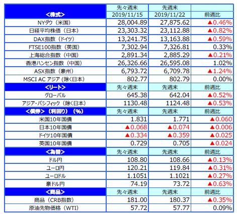 先週のマーケットの振り返り(2019/11/18-11/22)