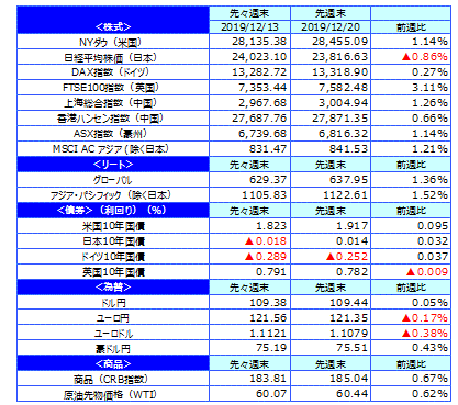 先週のマーケットの振り返り(2019/12/16-12/20)
