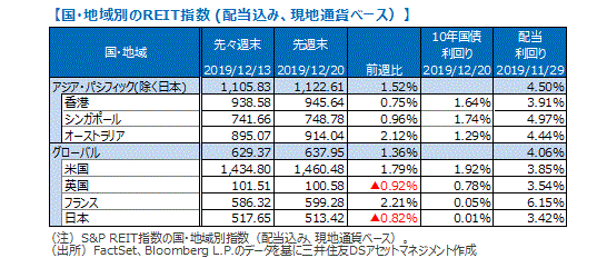 グローバル・リートは欧米株高などを受けて1.36%上昇しました。