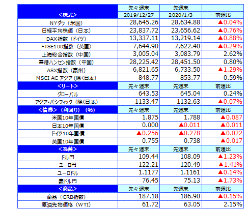 先週のマーケットの振り返り(2019/12/30-2020/1/3)