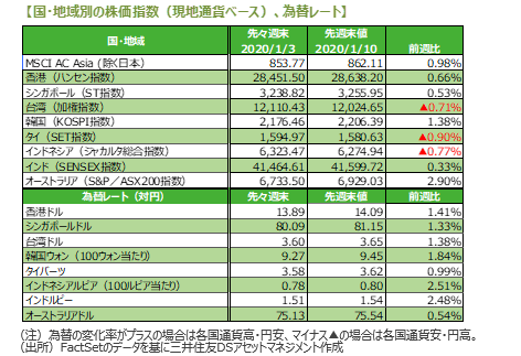 2.先週のアジア・オセアニア株式・リート市場