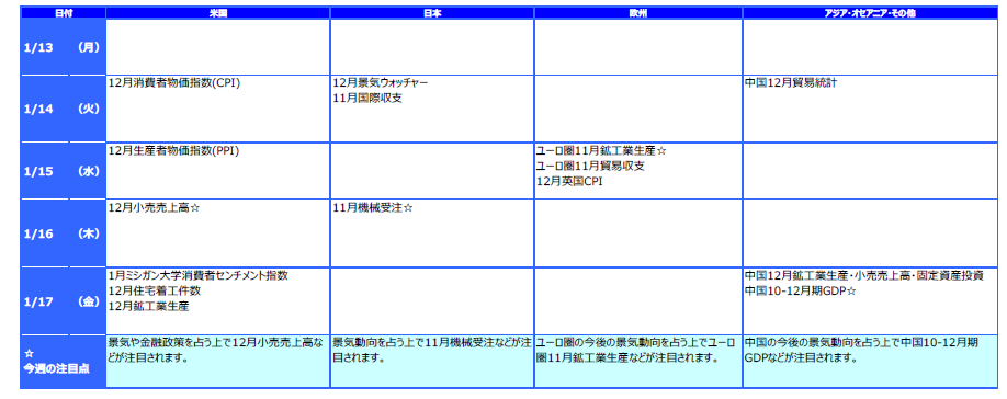 先週のマーケットの振り返り(2020/1/6-1/10)
