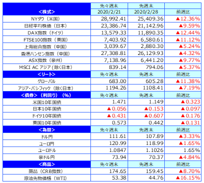先週のマーケットの振り返り(2020/2/24-2/28)