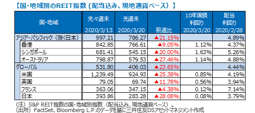 グローバル・リートは世界的な株価急落を受けて23.65%下落しました。