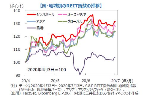 グローバル・リートは株式市場の上昇に連れる形で3.72%上昇しました。