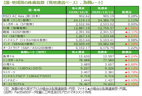 2.先週のアジア・オセアニア株式・リート市場