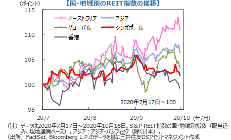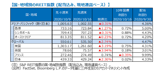 グローバル・リートは、世界的な新型コロナ感染拡大への警戒感などから2.74%下落しました。