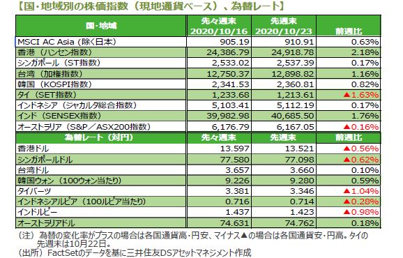 2.先週のアジア・オセアニア株式・リート市場