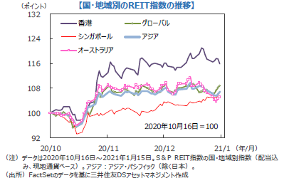 グローバル・リートは、欧米などでの長期金利低下などを好感して1.26%上昇しました。