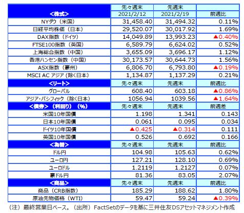 先週のマーケットの振り返り(2021/2/15-2/19)