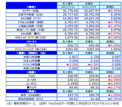 先週のマーケットの振り返り(2021/3/15-3/19)
