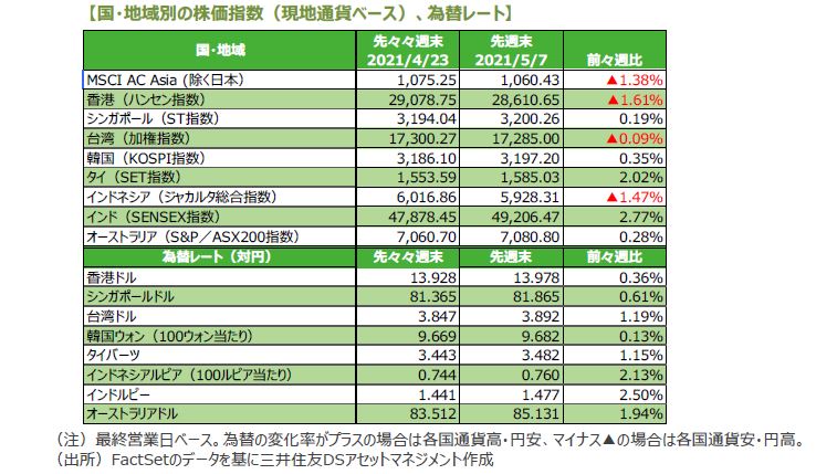 2.先週、先々週のアジア・オセアニア株式・リート市場