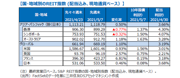 グローバル・リートは、欧米株高などを受けて、1.10%上昇しました。