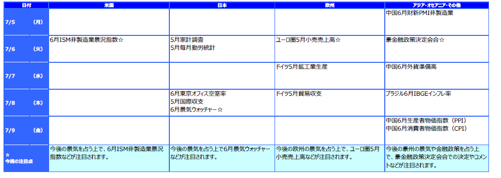 ※各経済指標・イベントは予定であり、変更されることがあります。