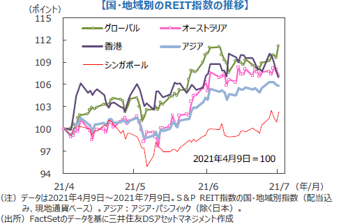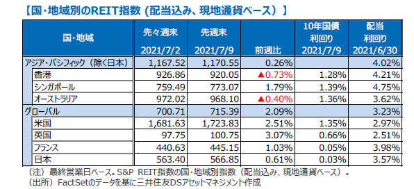 グローバル・リートは、欧米での長期金利低下などを受けて2.09%上昇しました。