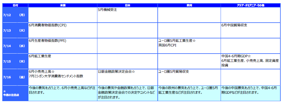 ※各経済指標・イベントは予定であり、変更されることがあります。