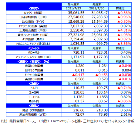 先週のマーケットの振り返り(2021/7/26-7/30)