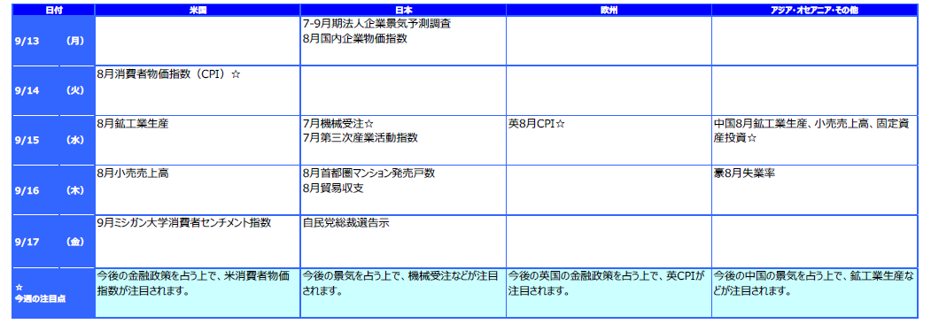 先週のマーケットの振り返り(2021/9/6-9/13)