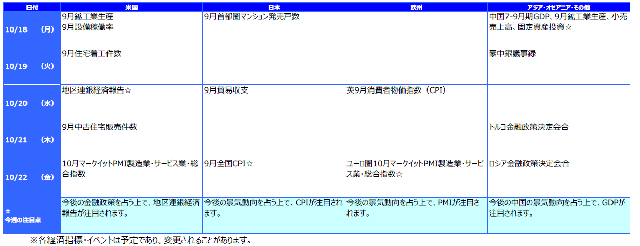 ※各経済指標・イベントは予定であり、変更されることがあります。