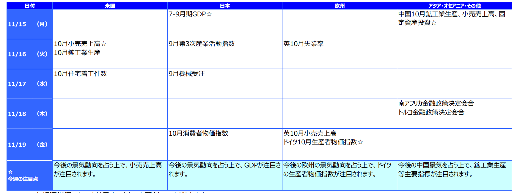 ※各経済指標・イベントは予定であり、変更されることがあります。