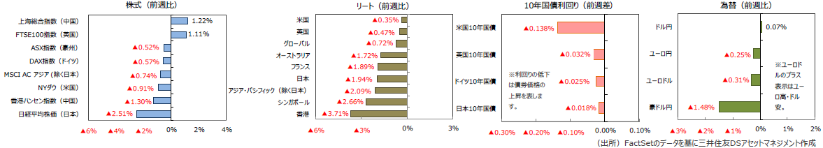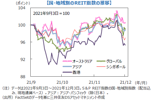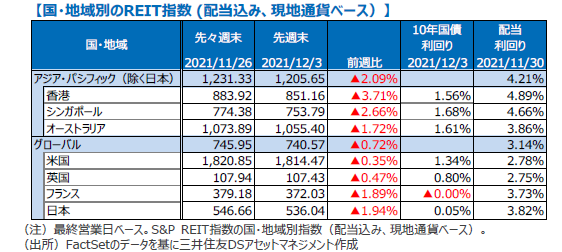 グローバル・リートは、オミクロン型への警戒感を受けて、週間で0.72%安となりました。