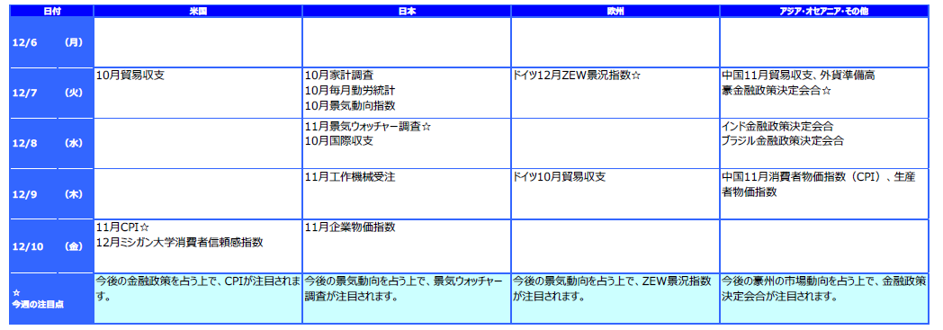 ※各経済指標・イベントは予定であり、変更されることがあります。