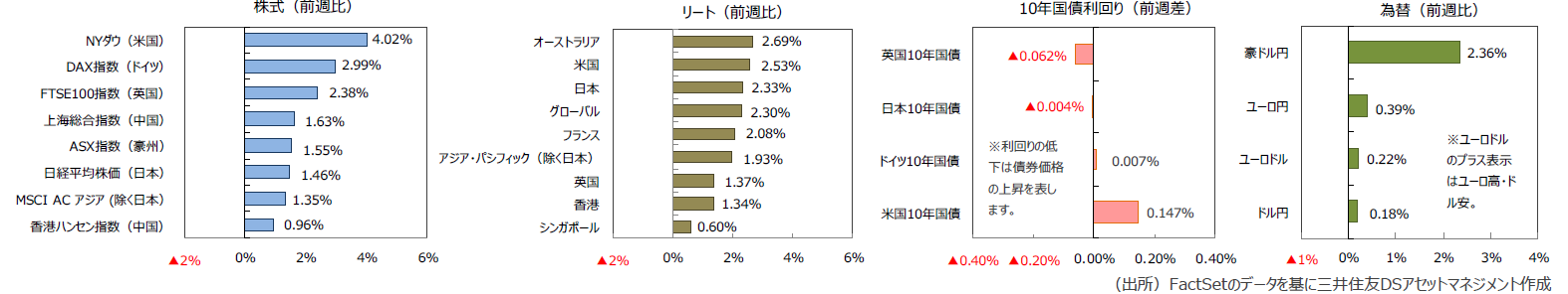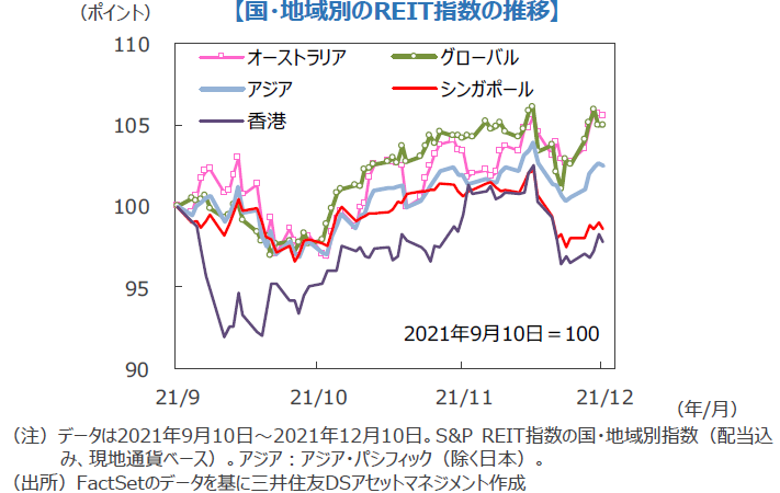 グローバル・リートは、オミクロン型への警戒感が後退したことを受けて、週間で2.30%高となりました。