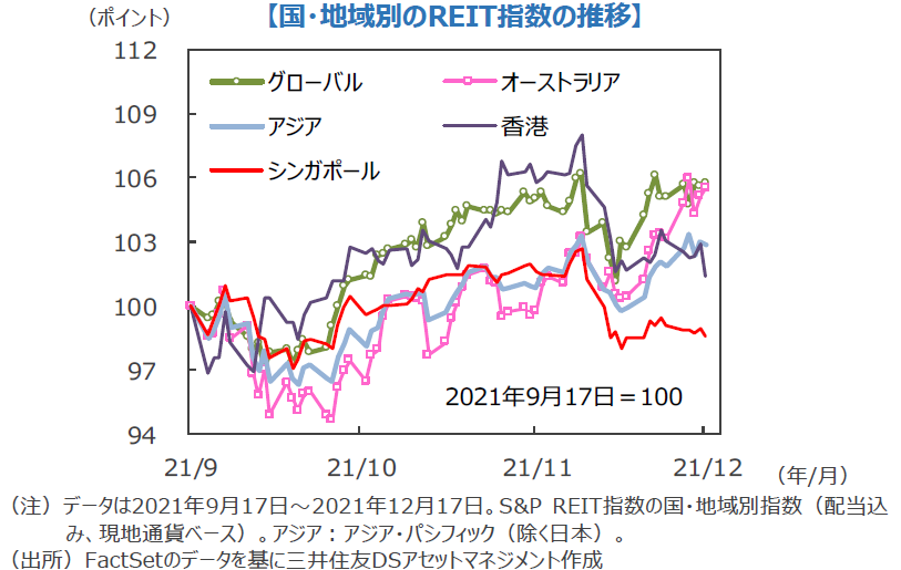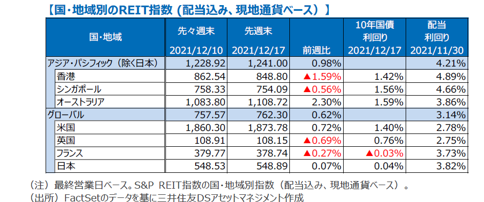グローバル・リートは、長期金利が低下したことを受けて、週間で0.62%高となりました。