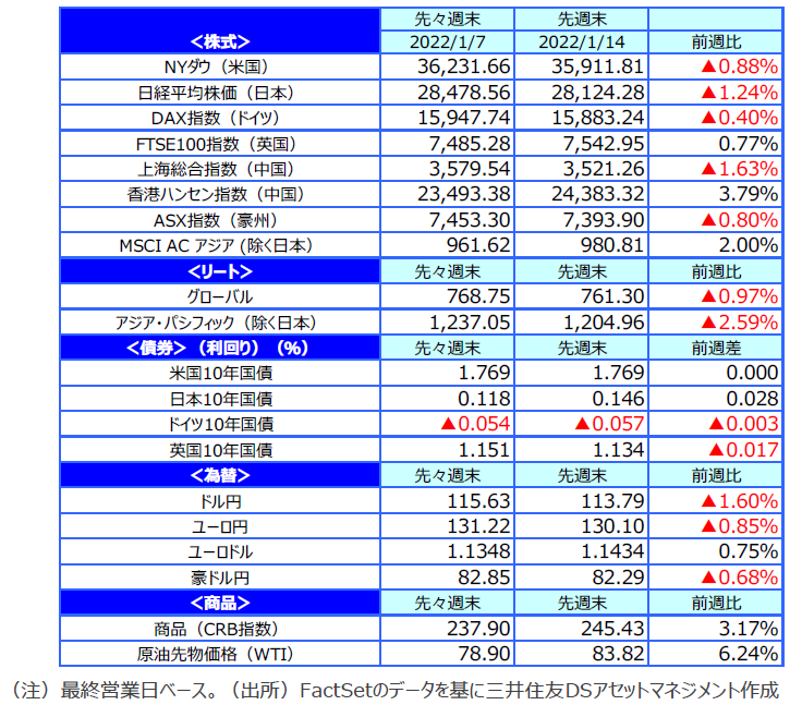 先週のマーケットの振り返り(2022/1/10-1/14)