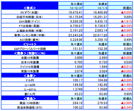 【ウィークリー No.291】先週のマーケットの振り返り(2013/12/30-2014/1/3)