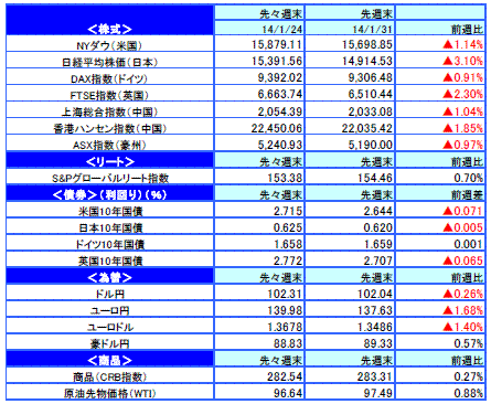 【ウィークリー No.295】先週のマーケットの振り返り(2014/1/27-1/31)