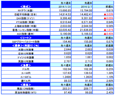 ホームマーケット週次・月次市場情報【ウィークリー No.296】先週のマーケットの振り返り(2014/2/3-2/7)/マーケット情報・レポート - 三井住友DSアセットマネジメント