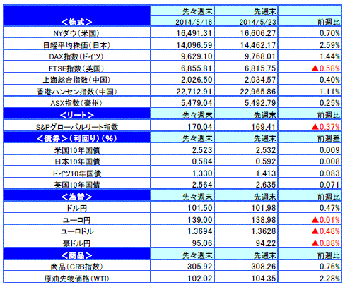 【ウィークリー No.311】先週のマーケットの振り返り(2014/5/19-5/23)